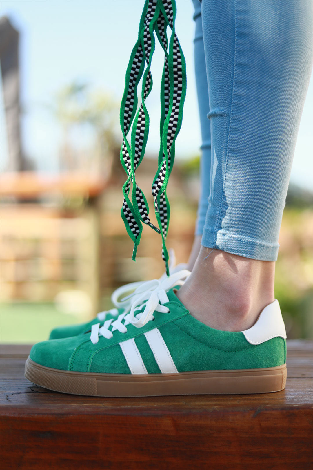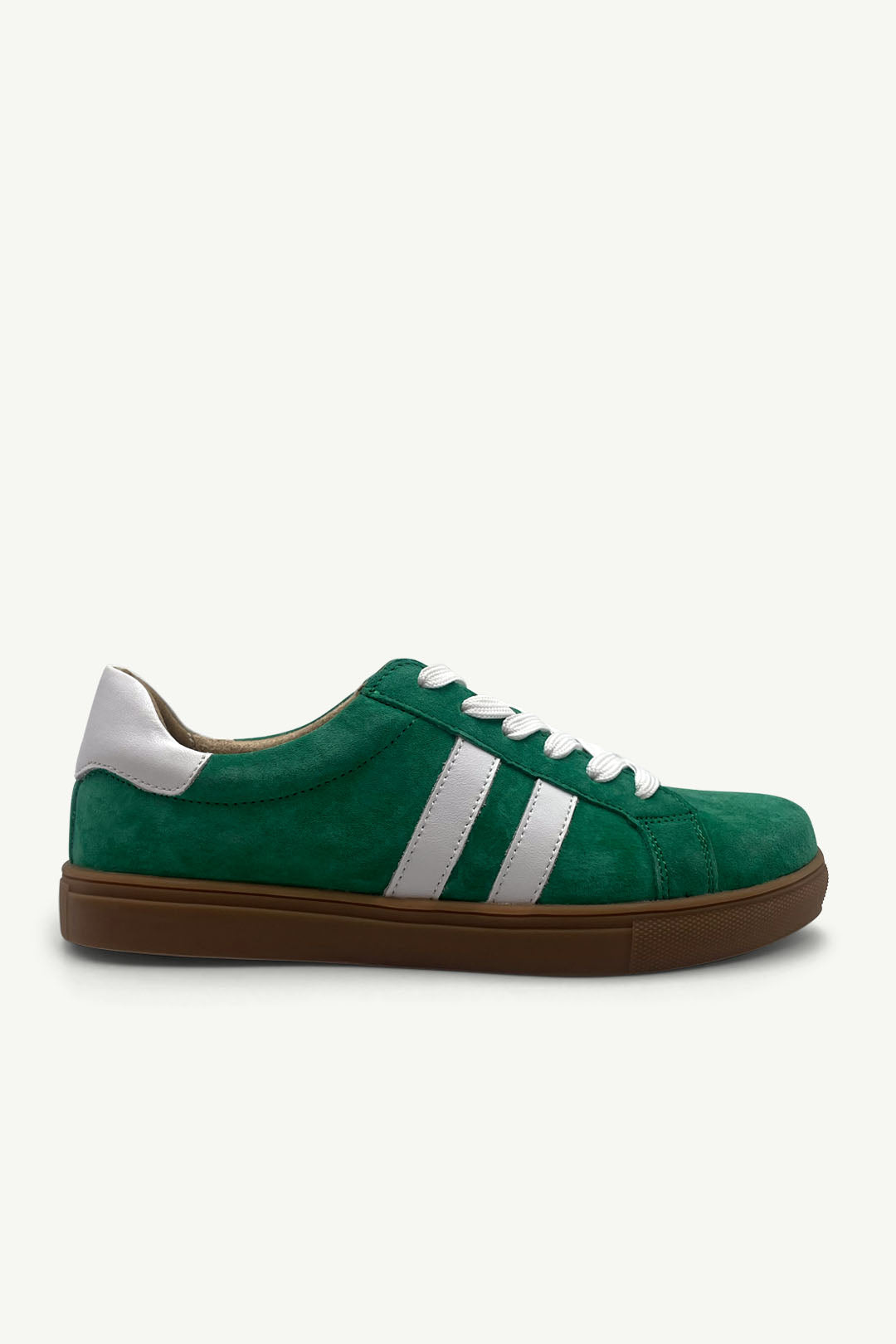 Meet the sneaker that doesn’t whisper, it speaks. Avri in Green + White is that pop of confidence your wardrobe’s been waiting for. With its rich emerald suede and crisp white stripes, this pair brings vintage varsity energy with a modern twist. Whether you’re off-duty or on the move, Avri’s got that cool-girl ease built in.