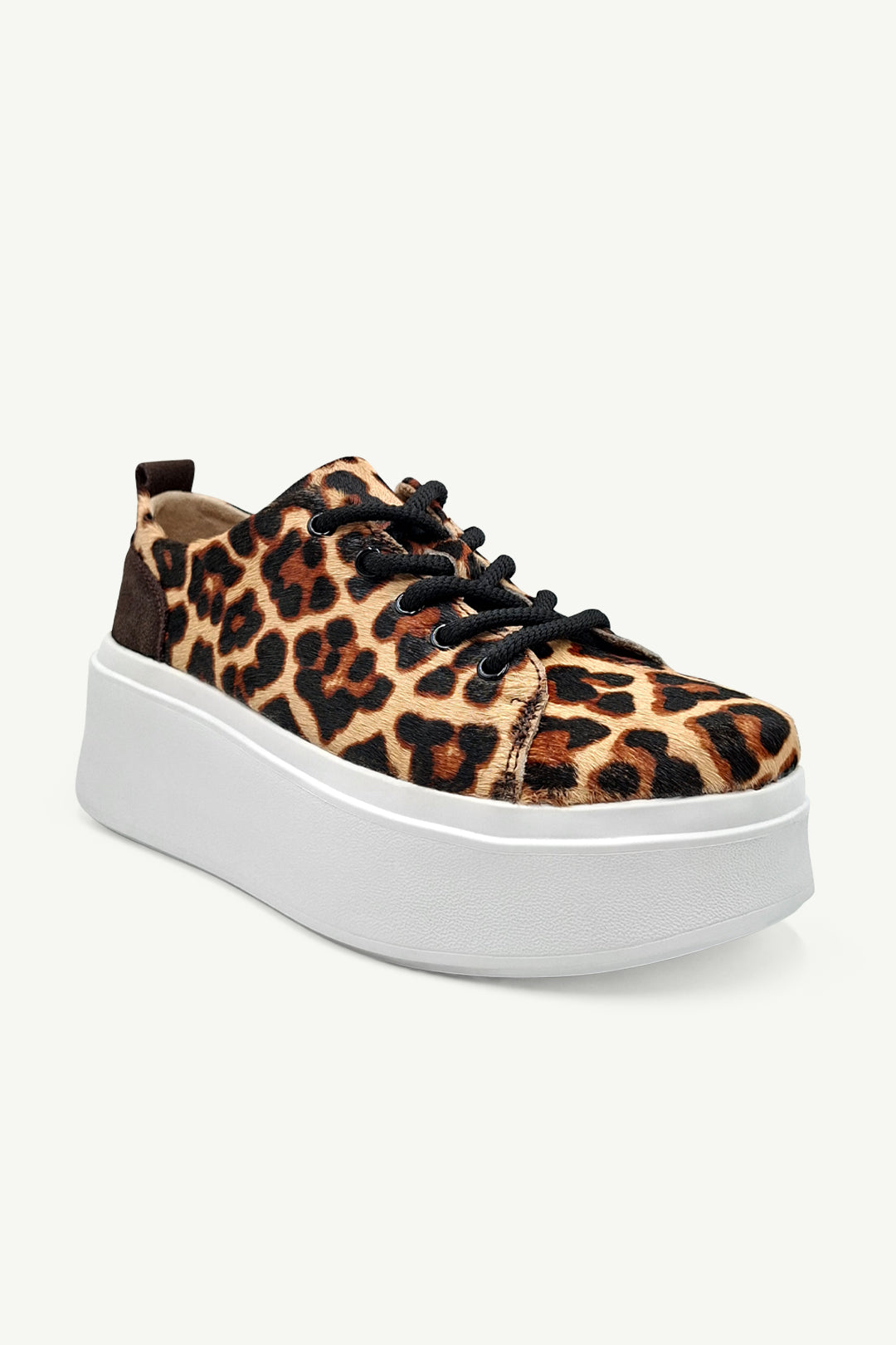 Bari Leopard brings fearless style with a bold Julz edge. Crafted in striking leopard-print hair-on leather and set on a chunky platform sole, she blends everyday comfort with statement attitude. The rich suede heel detail adds depth and contrast while the clean lace-up design keeps the look modern and wearable — the kind of sneaker that turns even the simplest outfit into a statement.
