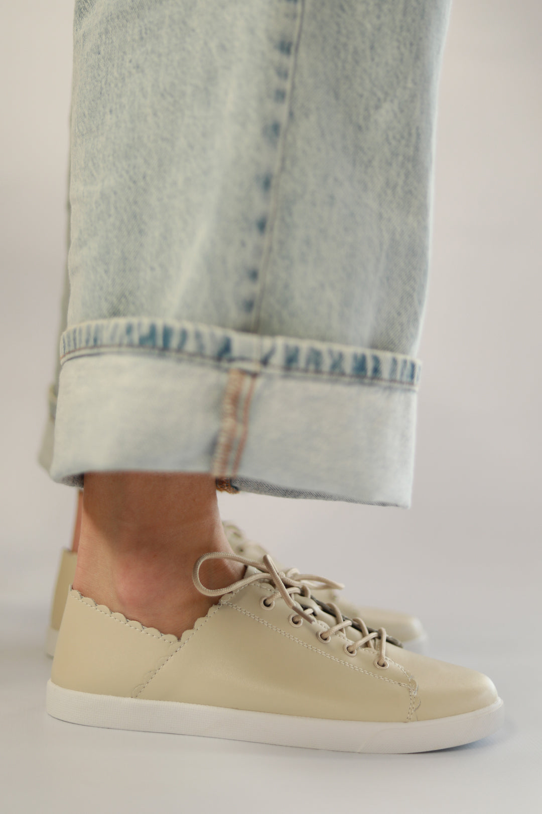 Subtle Style Statement: Crafted from soft beige leather, Chloe's neutral tone makes it endlessly versatile while the scalloped trim adds just the right amount of charm.