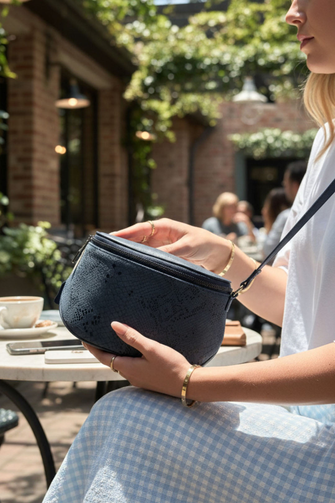 Not your average navy bag. Trixie brings texture, structure, and subtle sass all in one polished crossbody. With a smooth leatherette back and luxe snake texture on the front, she’s the cool-girl essential you didn’t know you were missing.