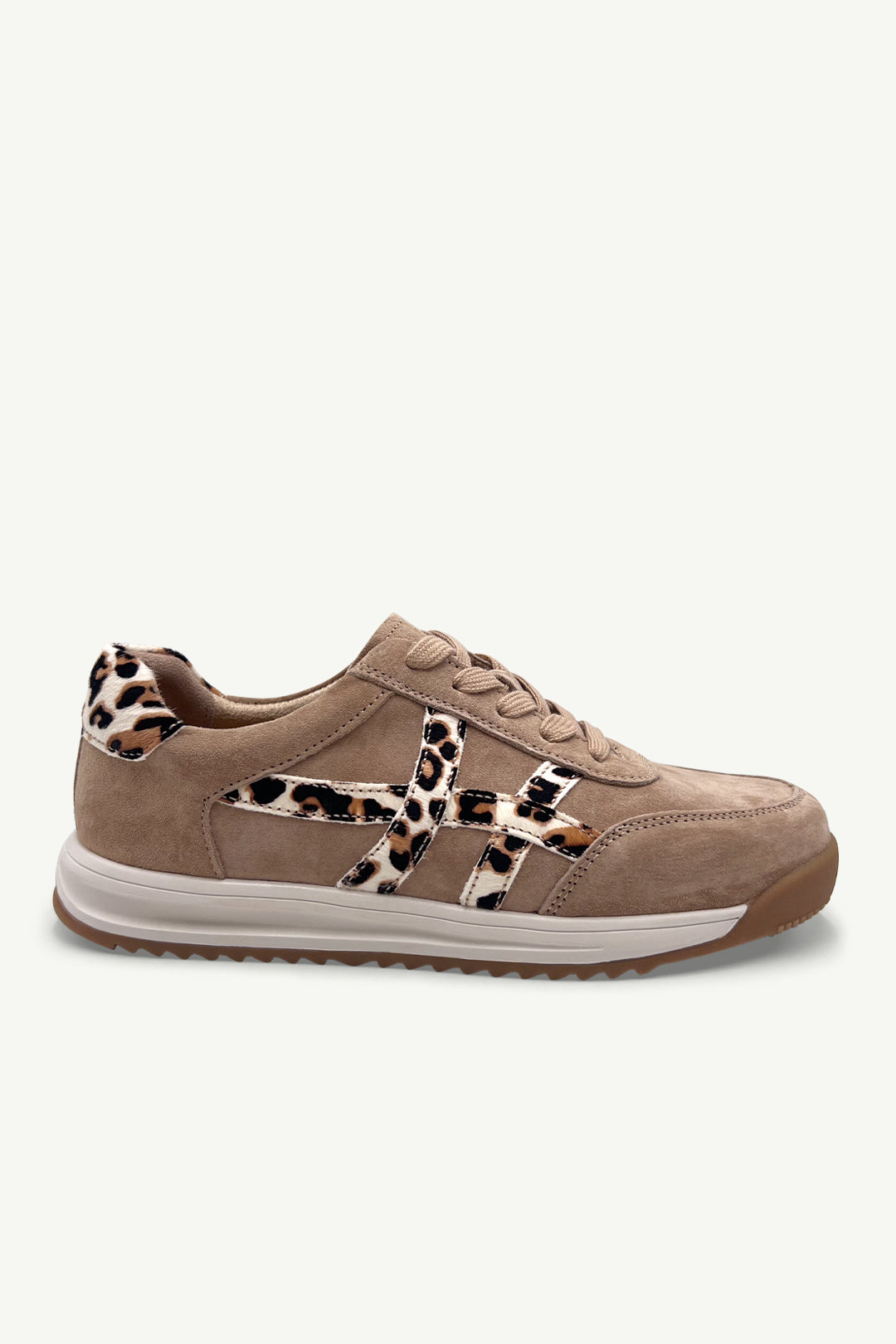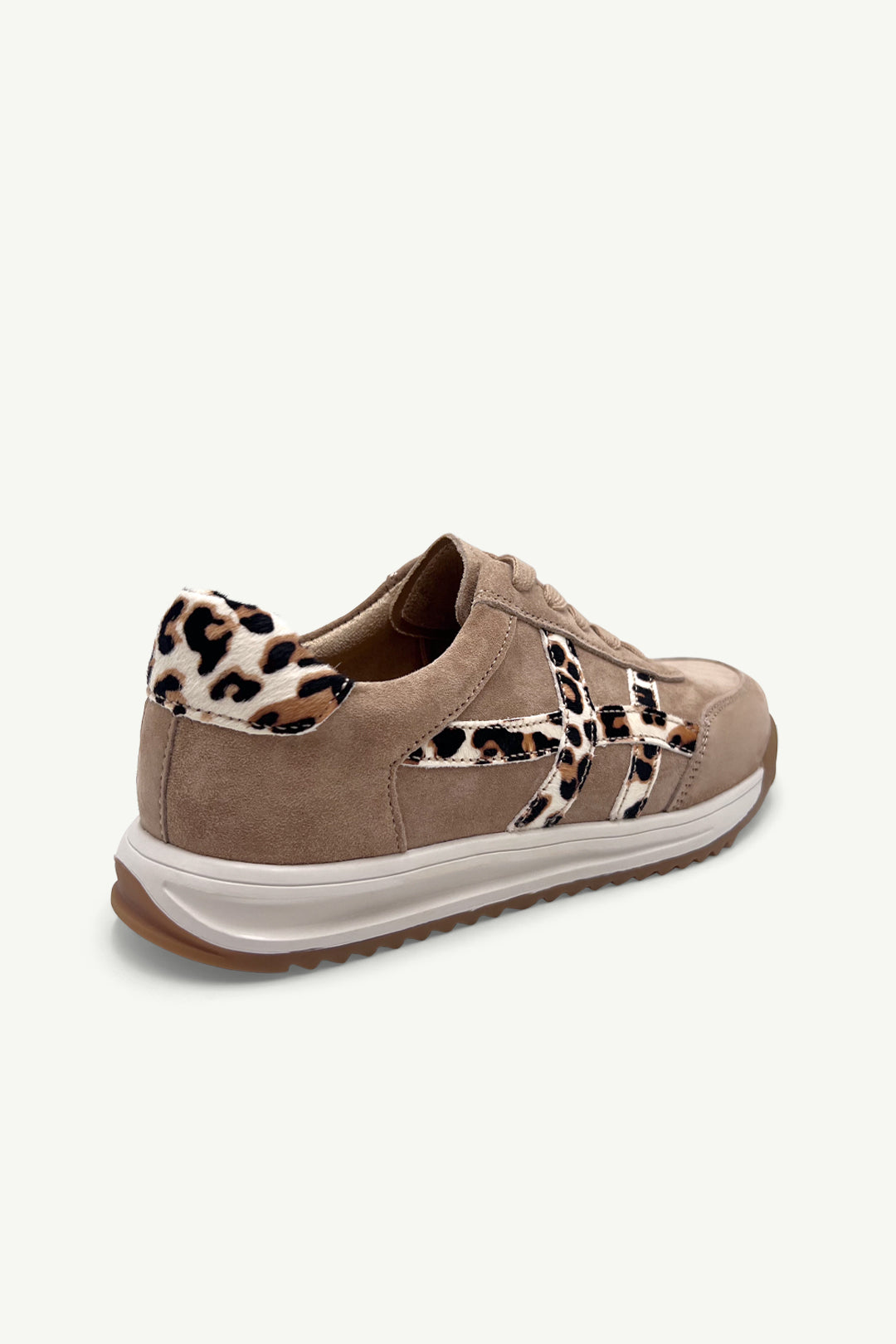 Soft beige suede meets fierce leopard energy, this sneaker is a lesson in balance. Calm on top, party on the side. Just how we like it.