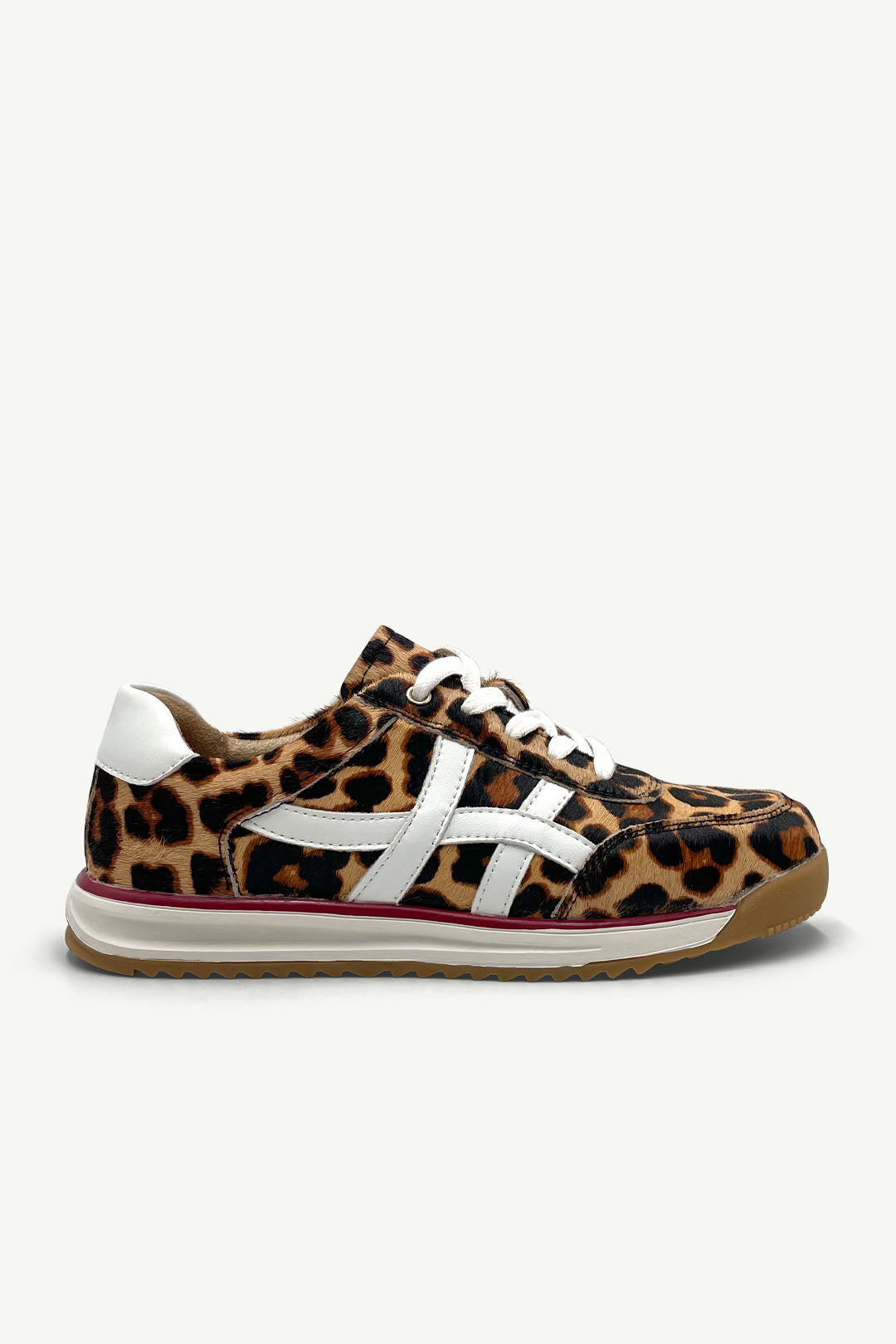 Not for the faint-hearted. This sneaker is bold, unapologetic and built to be noticed. Luxe leopard print meets crisp white detailing, finished with that unexpected red stripe for a flash of attitude underfoot.