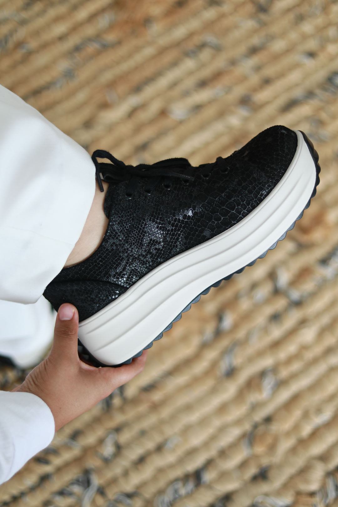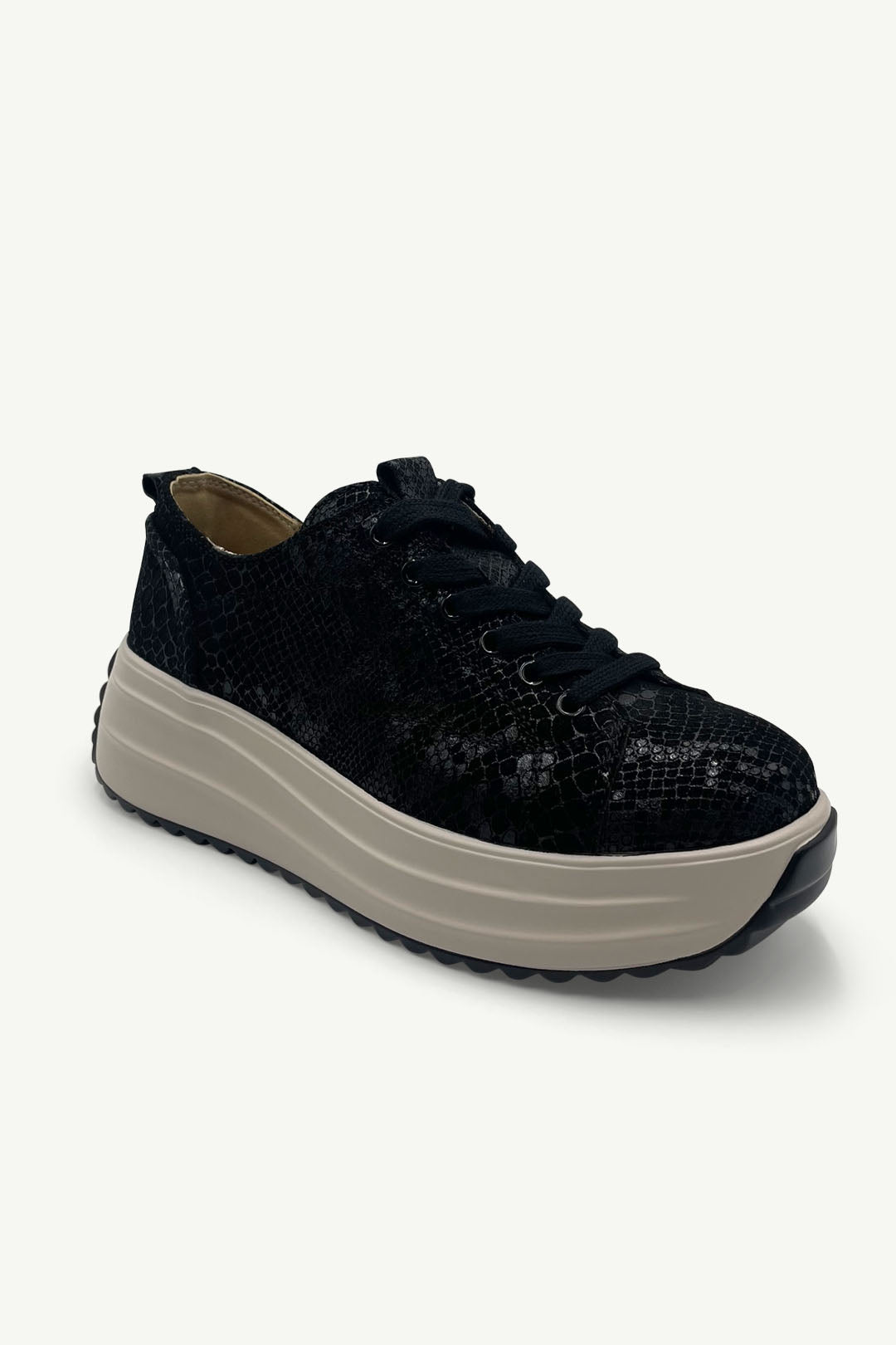 Black Snake-Embossed Upper: Subtle texture, bold attitude.