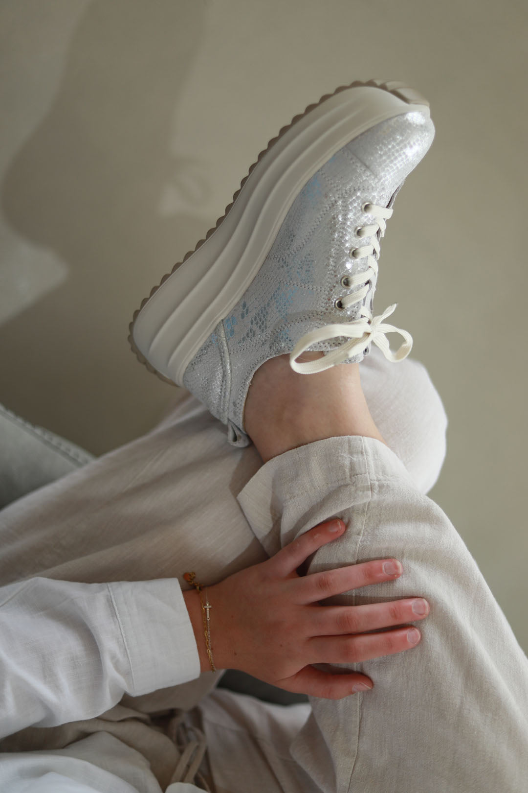 Shimmering Silver Snake Upper: Adds a flash of fierce to casual fits.