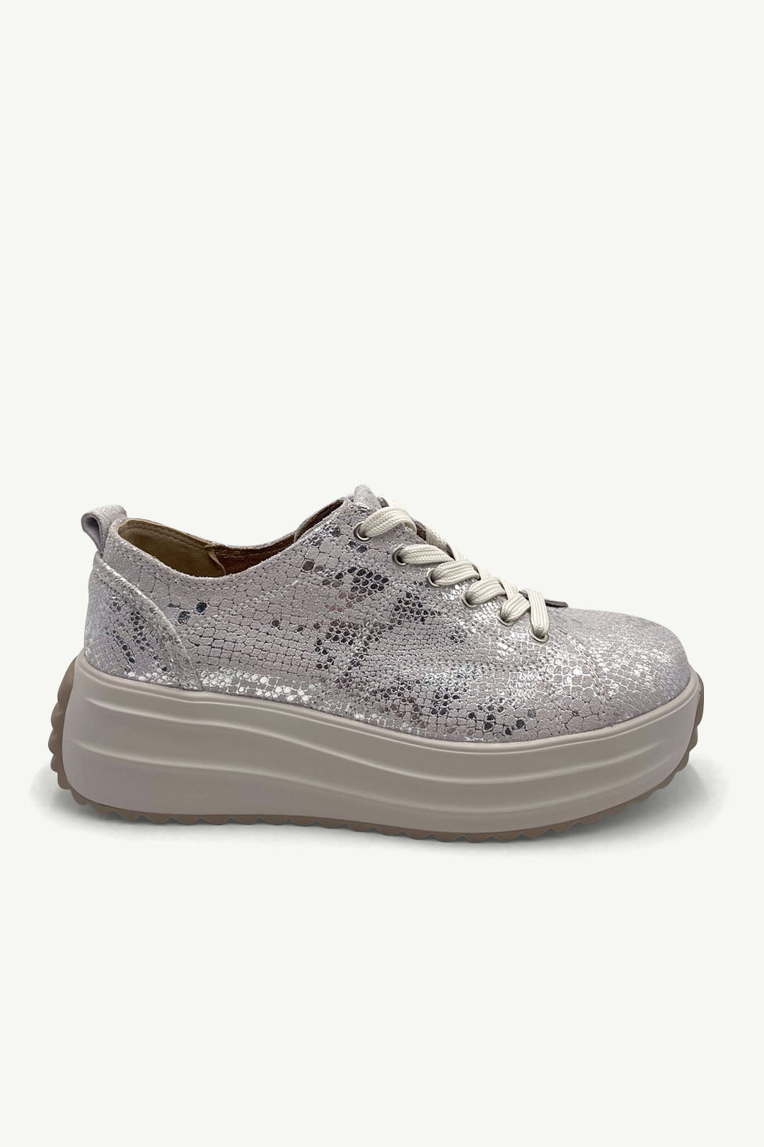 Slip into elevated shine with Raya Silver Snake – the ultimate glam sneaker for girls who move fast and shine brighter. Her iridescent scales catch the light with every step, while the chunky neutral sole grounds the look in everyday wearability. Bold yet balanced, she’s your new statement staple.