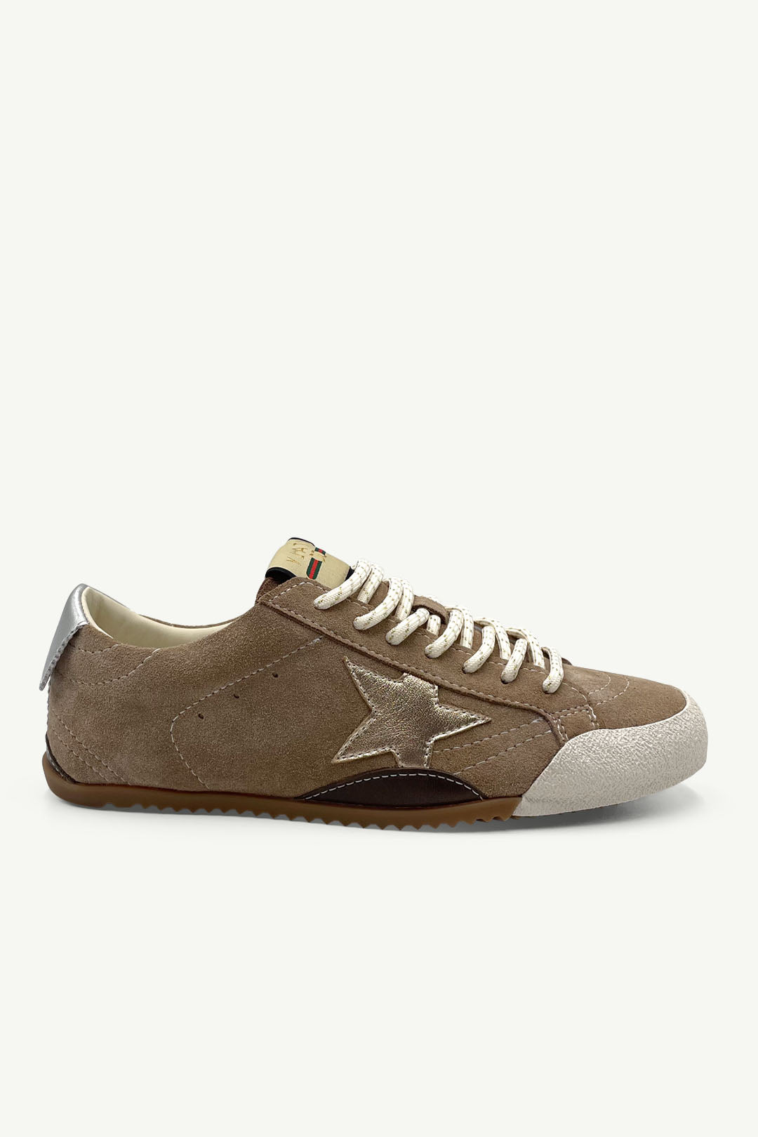 Classic meets cool in the Vespa sneaker—where old-school charm gets a dose of modern glam. With a vintage runner silhouette, distressed sole detailing and that signature star, she’s made for off-duty days that still deserve a little shine.