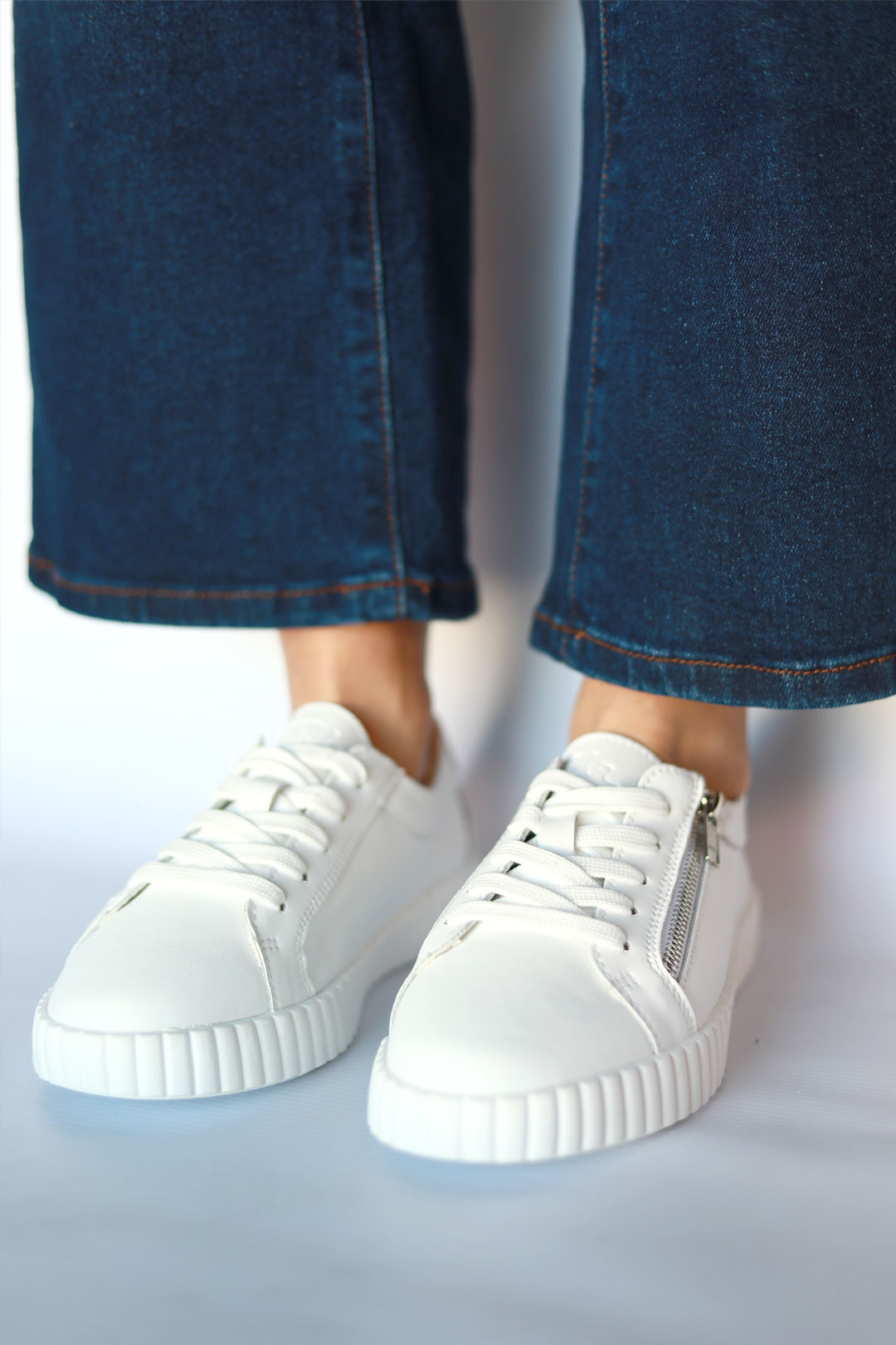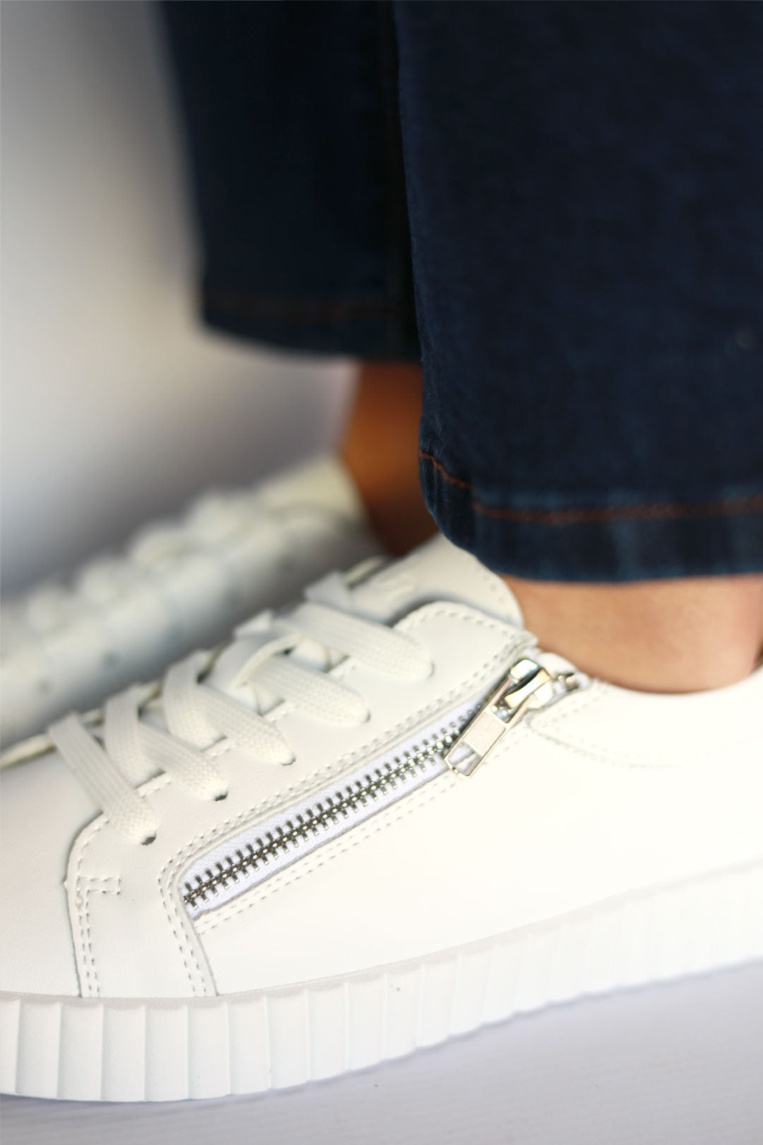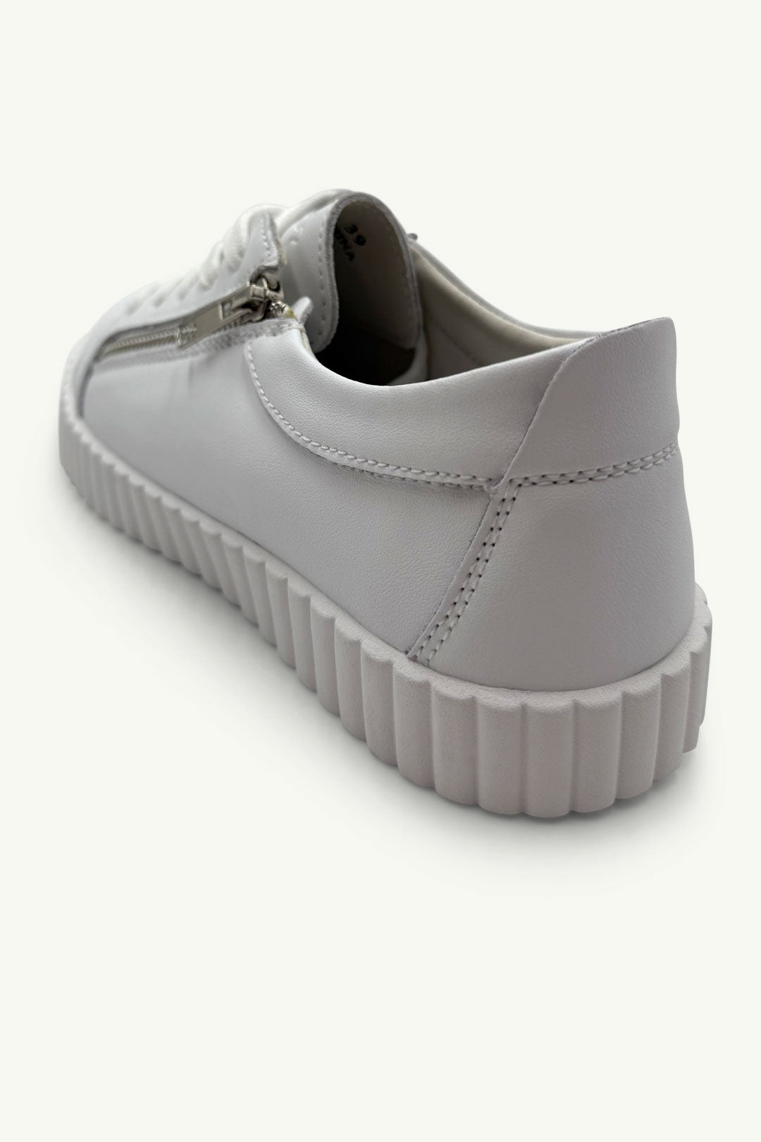 Your wardrobe’s crisp white upgrade is here. Callie White is the kind of sneaker that makes any outfit feel fresh – with its ribbed platform sole and polished silver zipper, it’s got just enough edge to stand out without trying too hard.