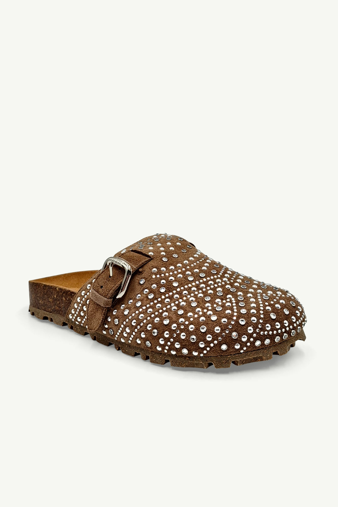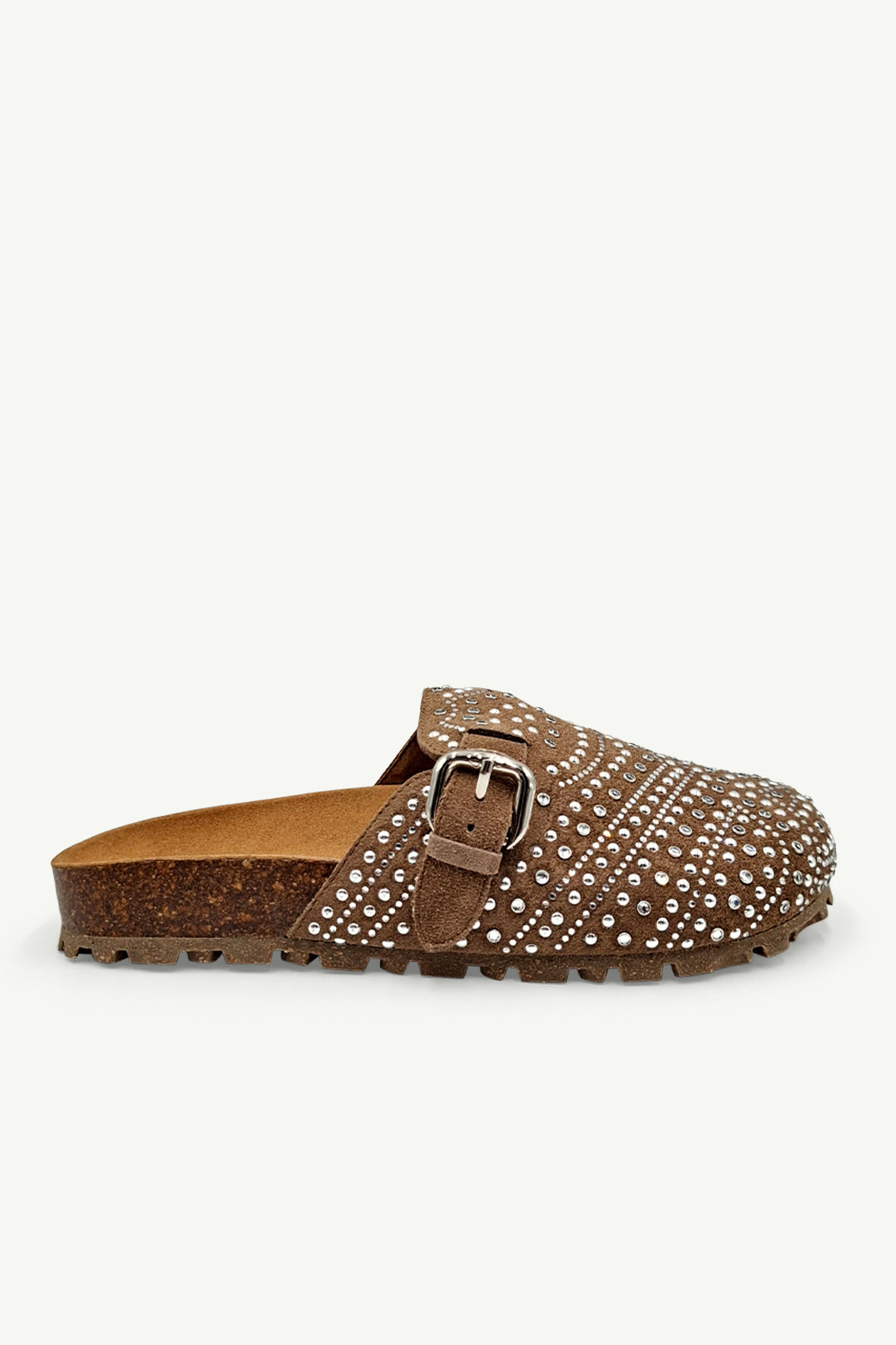 Nahla Hazelnut Diamanté is where relaxed style gets a glamorous upgrade. Crafted in soft hazelnut suede and finished with shimmering diamanté detailing, she’s the perfect mix of effortless and eye-catching. The classic buckle strap and contoured cork footbed make her as comfortable as she is striking.