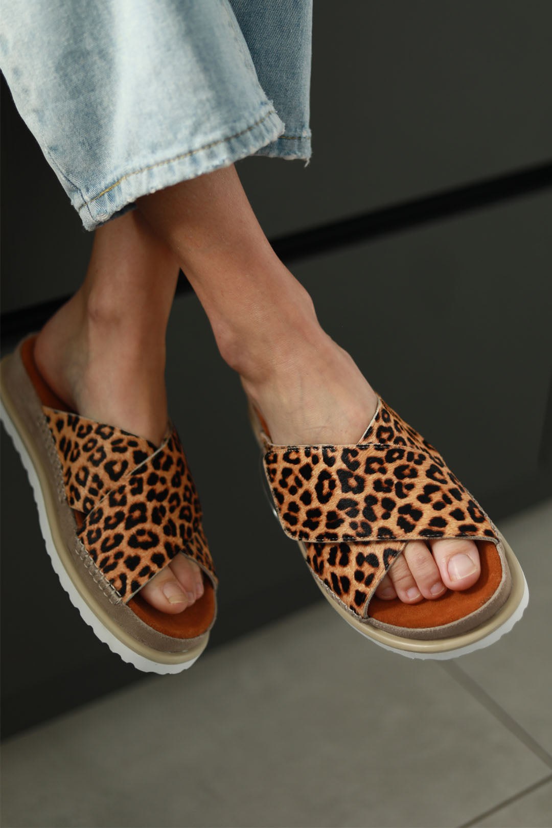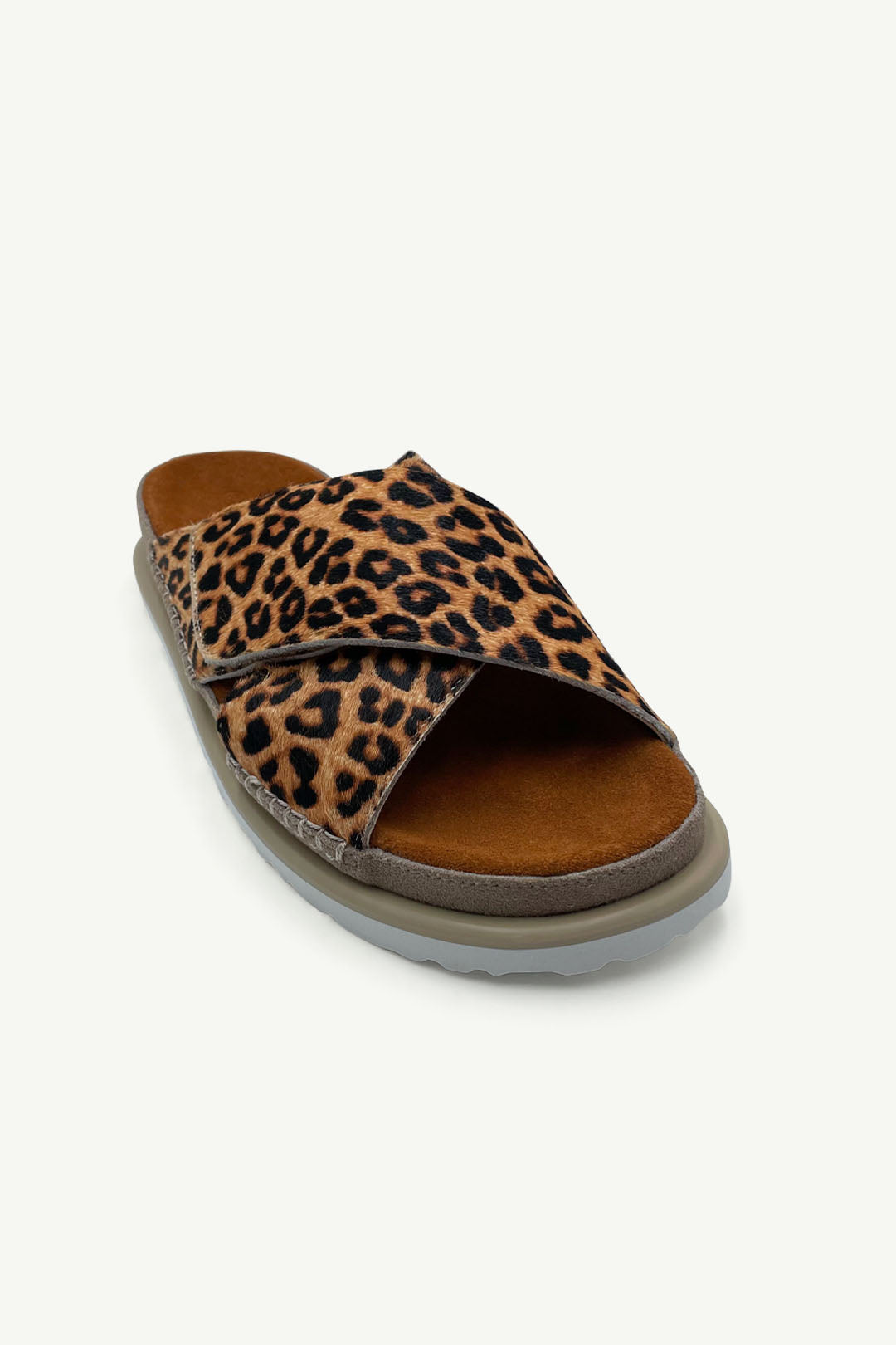 Unleash your inner wild with the Reese Leopard – a bold, easy-wearing slide that makes comfort feel fierce. With a luxe pony-hair textured strap and an earthy taupe suede base, this sandal strikes the perfect balance between laid-back and standout.
