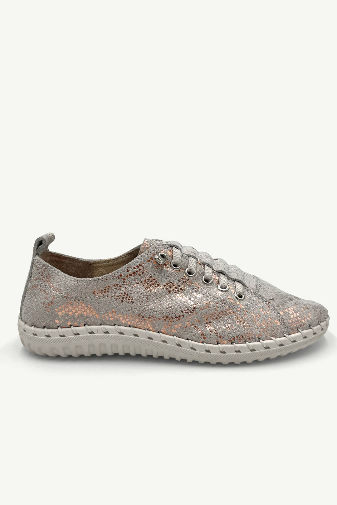 Everyday Shine, Effortless Wear: The sneaker that adds a subtle glow to your every step. Its soft rose‑gold leather finish is understated yet eye‑catching, perfect for styling up your daily looks.
